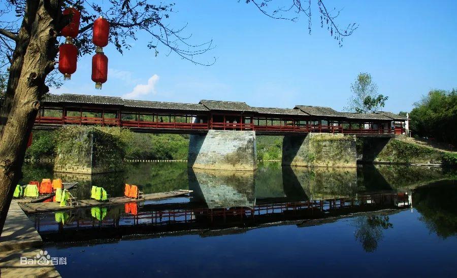 彩虹桥位于婺源县清华镇,因袭唐诗“两水夹明镜,双桥落彩虹”而名。始建于南宋,清代重修,全长140米,宽6.5米,为长廊式人行桥。廊桥为四墩五孔,石砌桥墩迎水面做成船型分水尖(图5/图10),桥墩与两驳岸各建桥亭,桥墩之间架设四根大梁,其上铺木建廊,构成六亭五廊式桥屋。古徽州最古老最长的廊桥,横跨婺水,形如彩虹,与青山、碧水、古村、驿道***结合在一起,冬日到访时,还有周边居民在河埠头洗衣服,构成了一幅静谧美好的生活画卷~